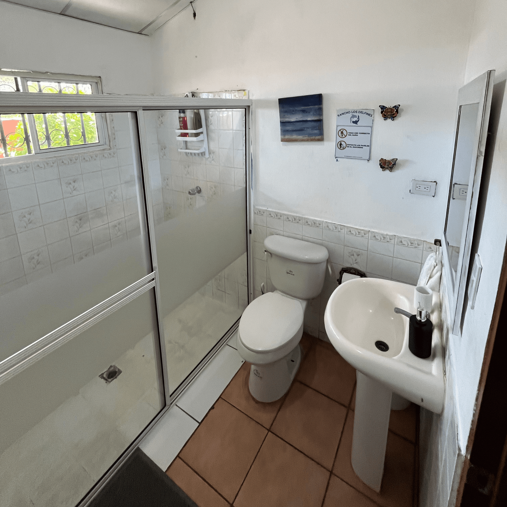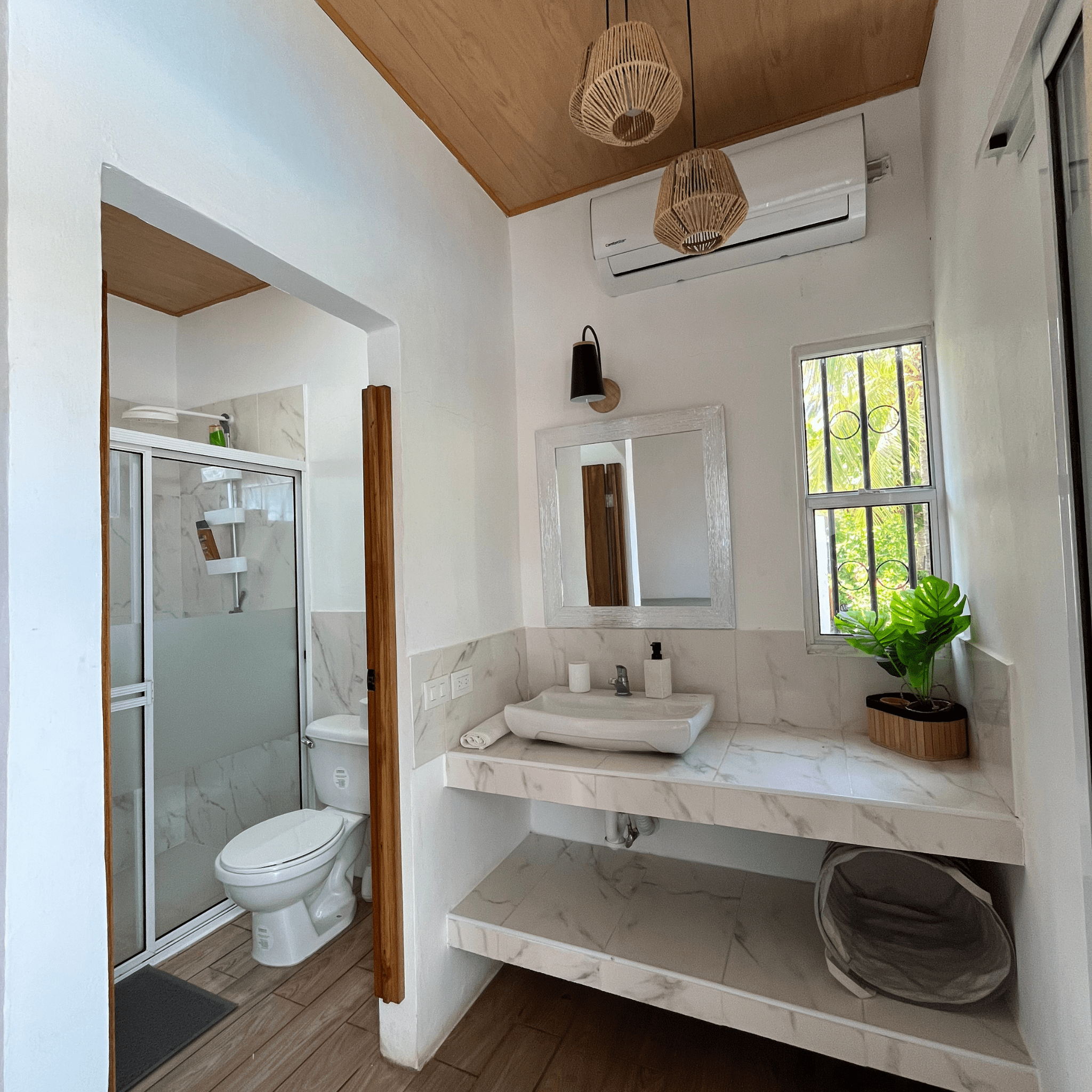 Baños amplios, cómodos y con acabados que invitan a relajarte después del mar.